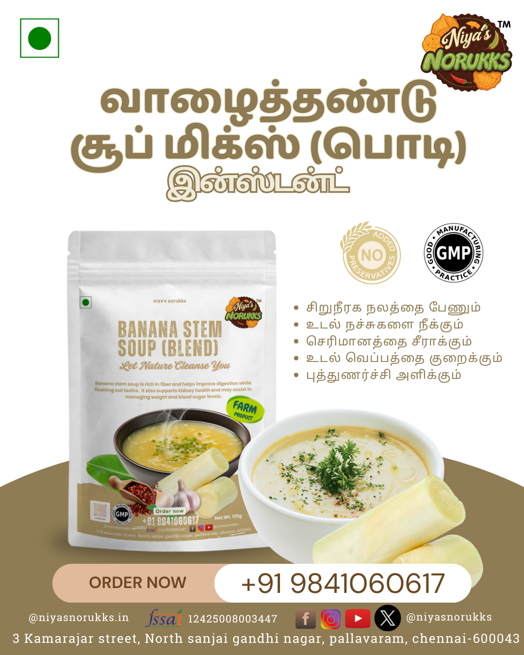 Our Banana Stem Juice Blend is a refreshing, fiber-rich health drink crafted from fresh banana stem extract. Known for its powerful detoxifying properties, this blend naturally supports kidney health, helps prevent kidney stones, and aids in flushing out toxins from the body.