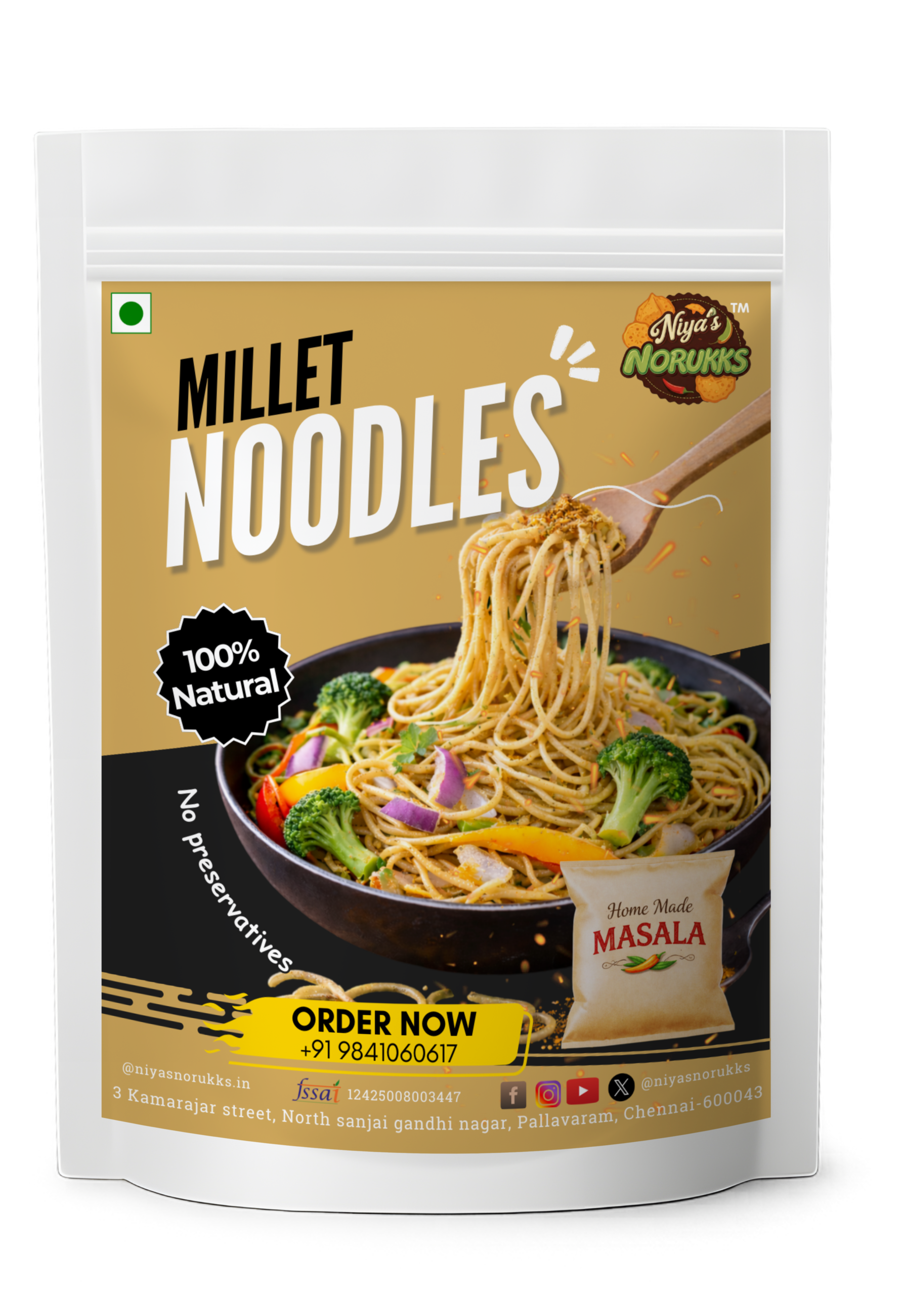 Multi Millet Noodles are carefully crafted using a balanced blend of selected millets such as ragi, jowar, and other traditional millets, chosen for their natural nutritional benefits. These noodles provide a rich source of dietary fibre and plant-based nutrients, making them a smart choice for health-conscious consumers.