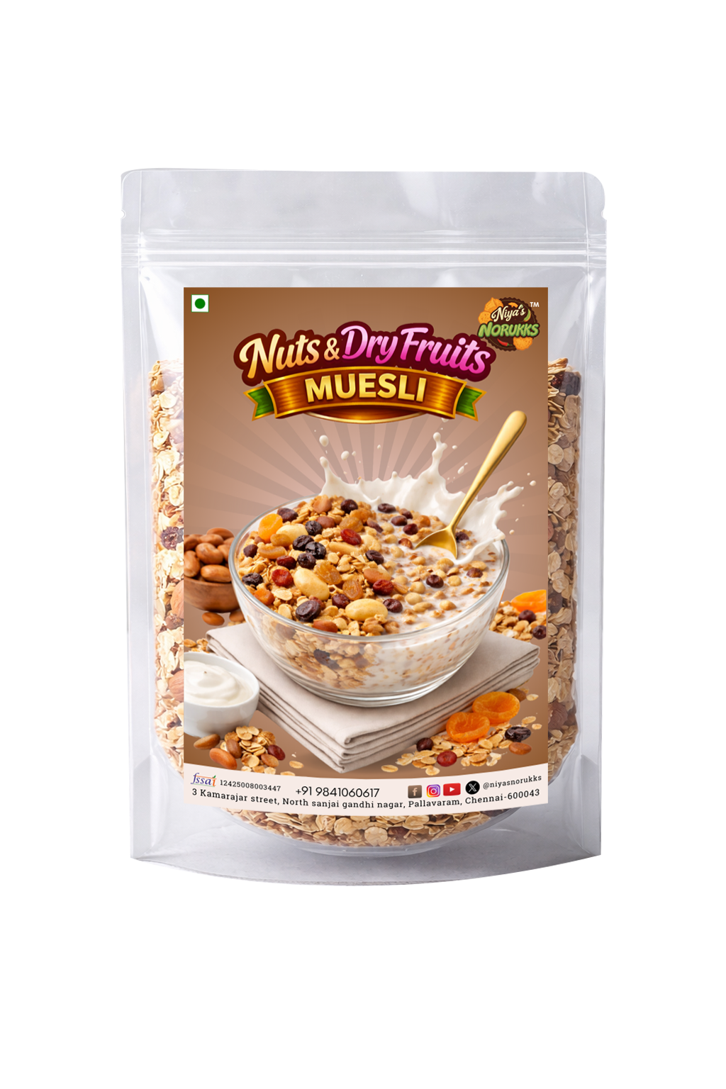 Start your day with a wholesome bowl of goodness! Our Nuts & Dry Fruits Muesli is a perfect blend of multigrains, crunchy nuts, and naturally sweet dried fruits, crafted to deliver both taste and nutrition in every bite.