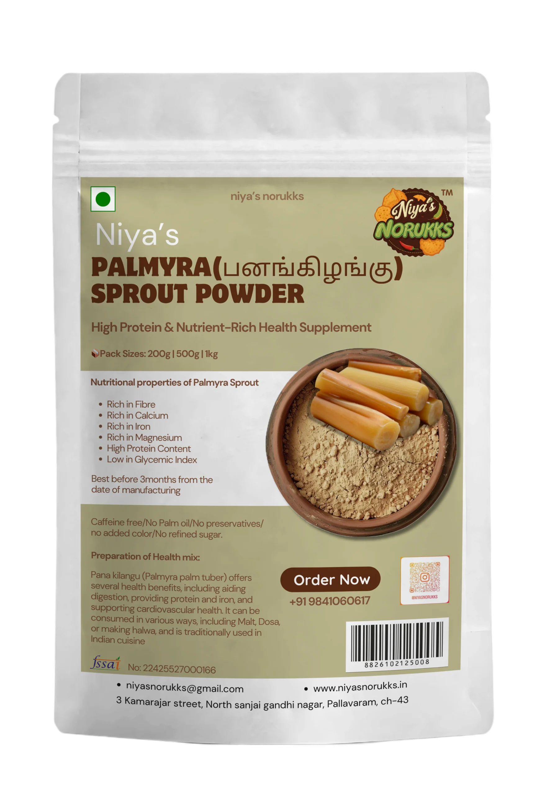 Made from sprouted and dried Palmyra tubers (???????????), this ancient superfood is known for its ability to cool the body, support digestion, and provide natural energy. Sprouting enhances nutrient absorption, making it rich in fiber, iron, calcium, and essential enzymes. Perfect for mixing with warm milk, porridge, or health drinks, this powder is a natural body coolant ideal for all age groups — especially during summer.