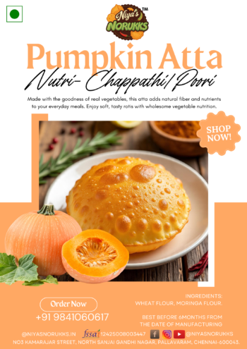 A wholesome wheat flour blended with nutrient-rich pumpkin, adding natural fiber, vitamins, and a soft texture to your everyday rotis. Mildly sweet, nutritious, and perfect for healthy cooking.